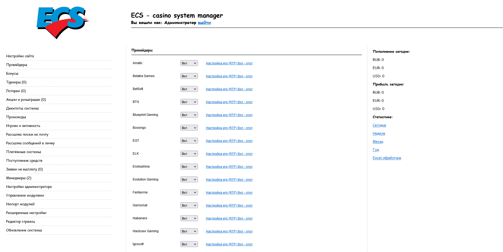 Полный контроль игр, как по провайдерам, так и по отдельности